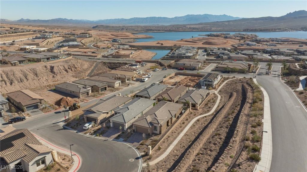 Lowest priced move-in ready home in Del Webb Lake Las Vegas. Built October 2024. No wait. No construction delays. Immediate occupancy. Luxury, lifestyle, and sweeping mountain and lake views define this modern retreat, perfectly positioned on an elevated private corner lot on one of the few nearly completed streets in the community. This home showcases refined upgrades and designer finishes throughout. The stunning family room is anchored by a cozy fireplace, wall-mounted TV, and expansive windows framing mountain, lake, and glowing sunset views. This home offers a bright open layout, elegant details, a completely finished backyard retreat, and low-maintenance landscaping. Optional furnishings create full-time living or a seasonal escape. Enjoy the premier Del Webb Lake Las Vegas lifestyle with resort-style pools, state-of-the-art fitness center, tennis and pickleball courts, award-winning golf nearby, and a vibrant social calendar. 2-car garage. Exceptional value. Ready now.