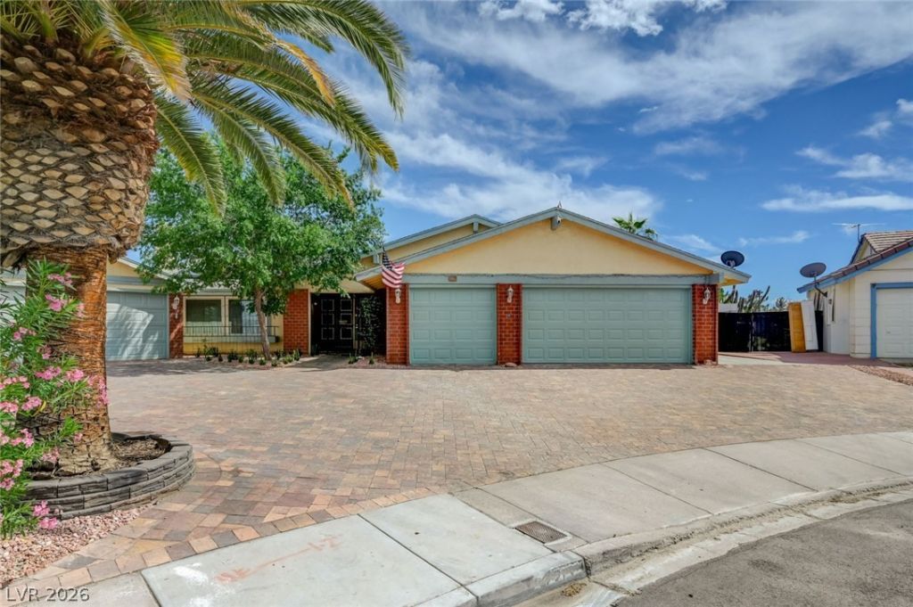 This beautifully updated single-story home offers 2,748 sq ft of spacious living with a rare 5-car garage?perfect for car enthusiasts or extra storage. Featuring 4 bedrooms and 3 bathrooms, the layout is both functional and versatile. A standout feature of this home is the two kitchens, ideal for multi-generational living, entertaining, or added convenience for large families. The open living spaces flow seamlessly, enhanced by brand-new vinyl flooring throughout and fresh interior paint, creating a bright and modern atmosphere. Step outside to your private backyard oasis, complete with a sparkling swimming pool that has just been refinished with new plaster?perfect for relaxing or hosting guests. Located just minutes from the Las Vegas Strip and close to grocery stores, dining, and everyday essentials, this home offers the perfect blend of space, flexibility, and prime location.