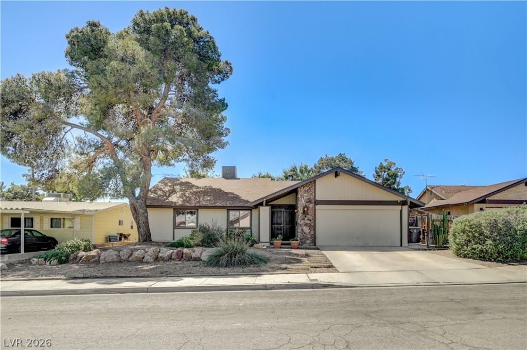 Welcome to this charming single-story home, meticulously maintained and full of warmth and character. Featuring 4 spacious bedrooms, this residence offers both comfort and functionality for everyday living. A cozy wood-burning fireplace creates the perfect gathering space, while large windows invite in natural light throughout. Situated on an expansive lot, the property boasts a unique additional walking path area, ideal for relaxing strolls or outdoor enjoyment. Step outside to your private backyard oasis complete with a large pool, real grass, and mature landscaping that provides beauty and shade year-round. Conveniently located just minutes from the Las Vegas Strip, with easy access to dining, shopping, and transportation, this home offers the perfect blend of tranquility and accessibility. A rare opportunity to own a well-cared-for property in a quiet location with NO HOA.